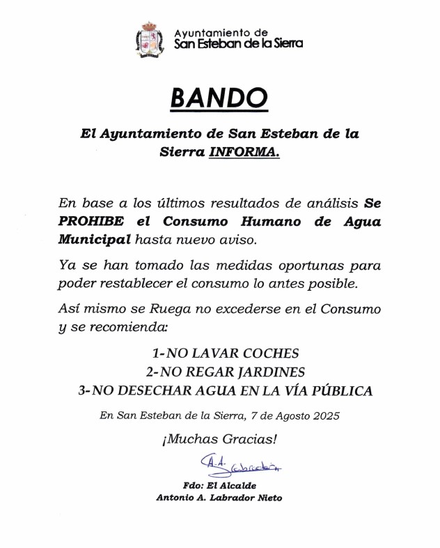 BANDO PROHIBIDO CONSUMO HUMANO DE AGUA