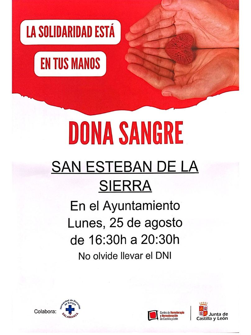DONACIÓN DE SANGRE EN SAN ESTEBAN DE LA SIERRA EL LUNES 25 DE AGOSTO