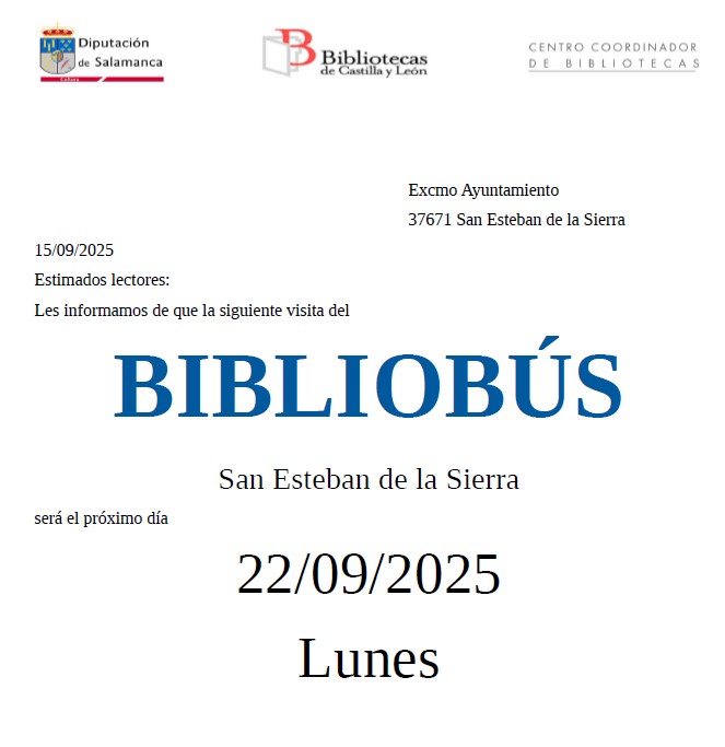 PRÓXIMA VISITA DEL BIBLIOBUS EL LUNES 22-09-25
