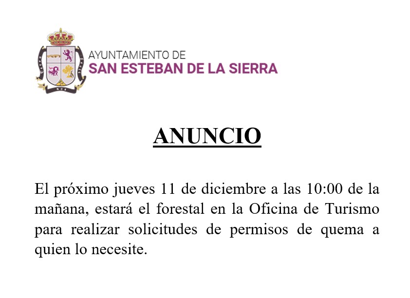 SOLICITUDES DE PERMISOS DE QUEMA EL JUEVES 11 DE DICIEMBRE
