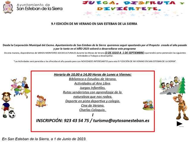 Cursos y actividades General LOS DIAS 17 Y 24 DE AGOSTO NO HAY "MI VERANO EN SAN ESTEBAN" Hace 2 años