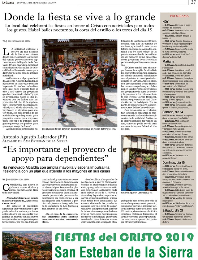 Asociación Eventos Ferias y fiestas Local FIESTAS DEL CRISTO 2024 SAN ESTEBAN DE LA SIERRA Hace 1 año